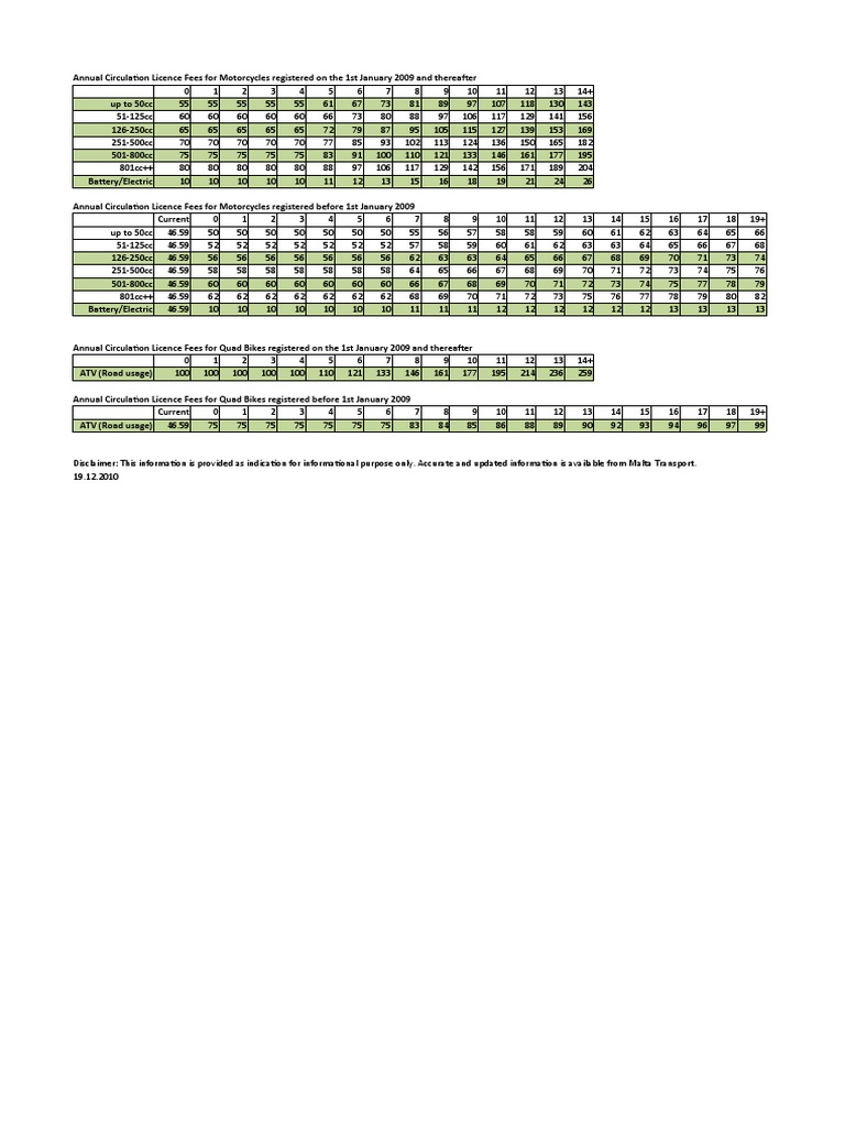 Malta Annual Circulation Licence Fees Motorcycles Pdf Vehicles Land Vehicles